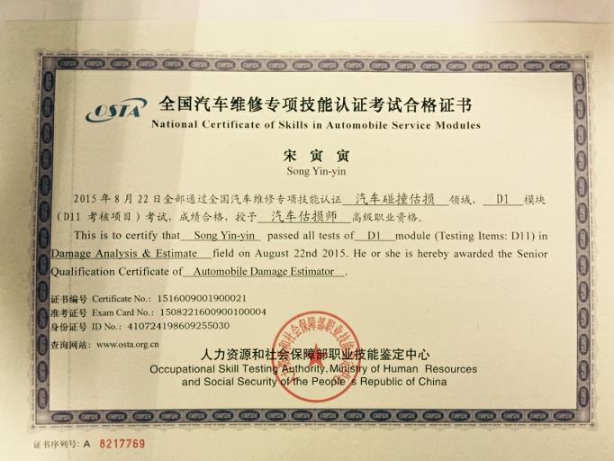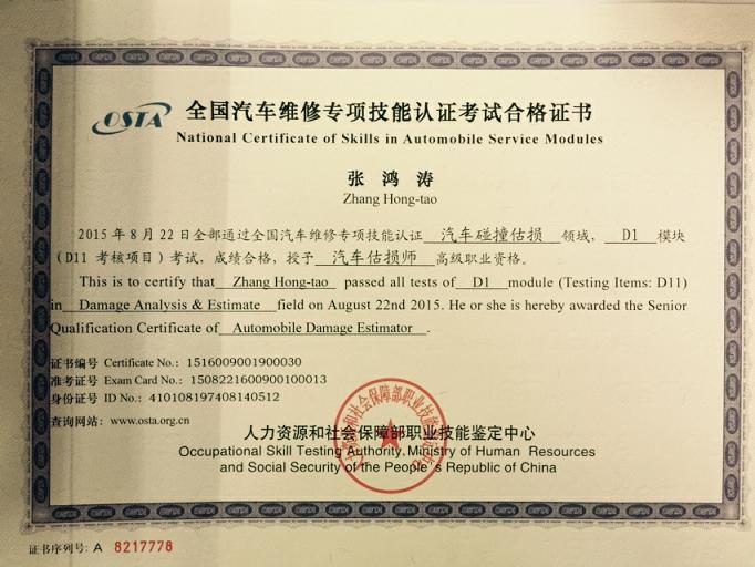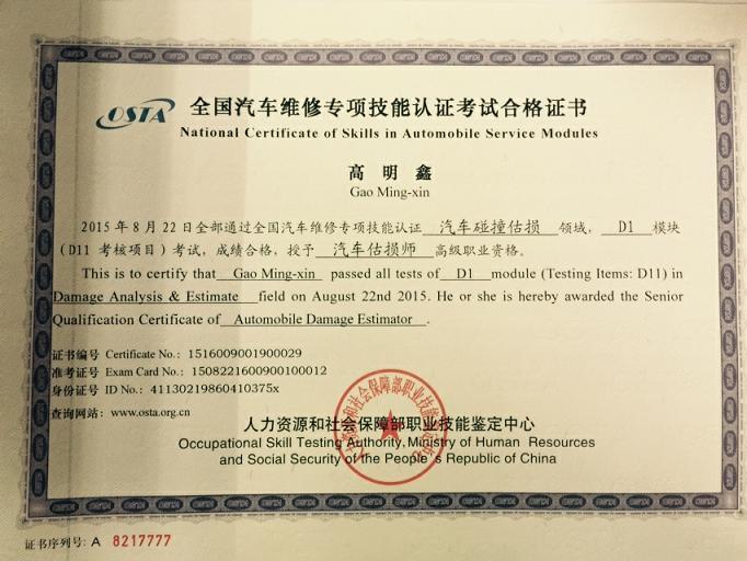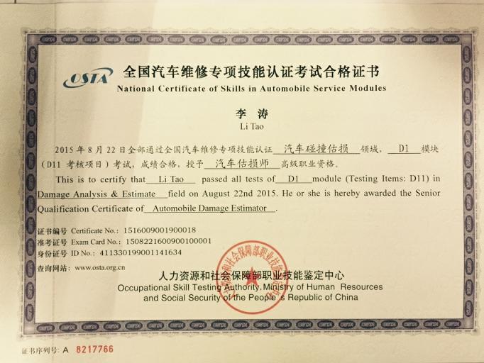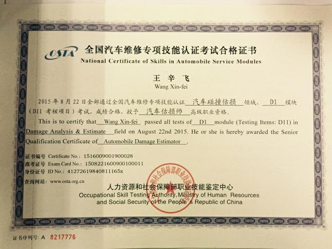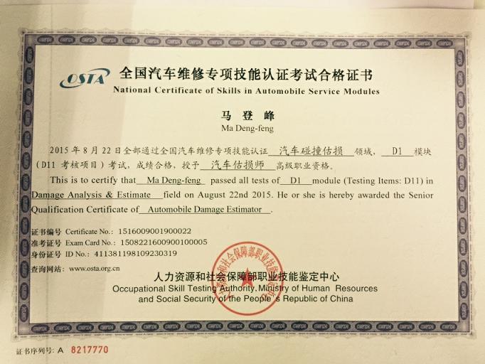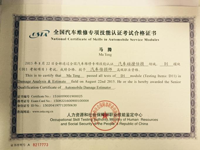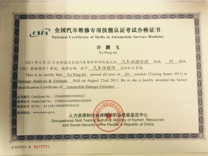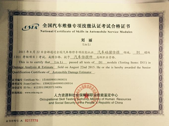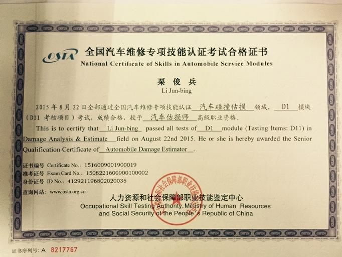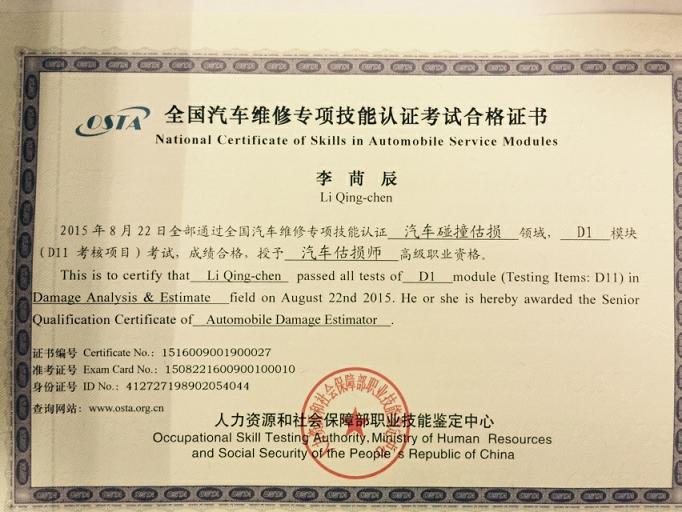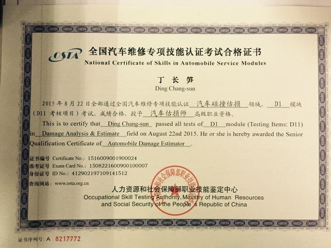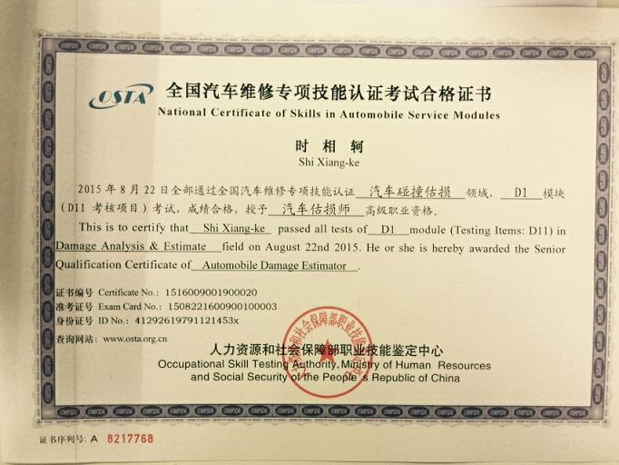 新一期的汽车估损师的证书已经到位,拿到手的各位可以为您的工作锦上添花。下面证书风采展示: