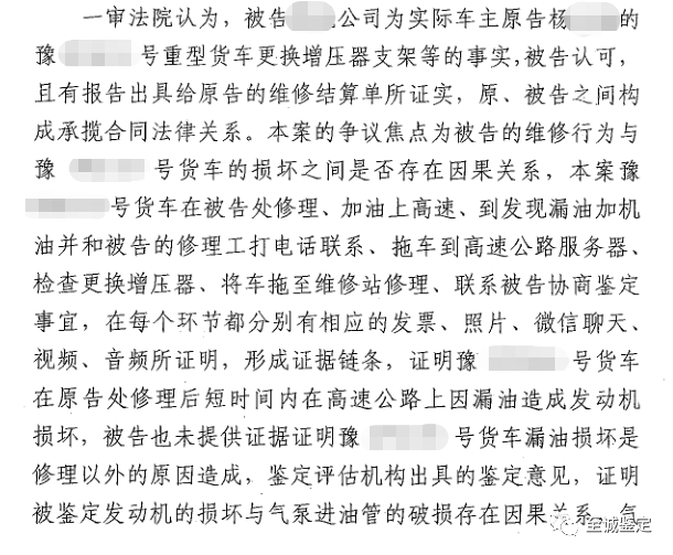 【案件焦点】发动机的损坏到底和增压器支架的维修有没有关系?发动机维修费用到底应该由谁来买单?如何找出发动机损坏的真正原因?为了解答这些问题找出事实真相,车主杨女士找到了专业第三方鉴定机构——河南至诚旧机动车鉴定评估有限公司。