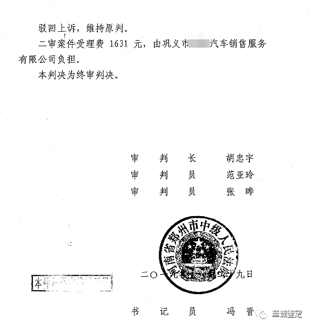 【庭审结果】在一审中,原告车主杨女士向法庭提交了河南至诚旧机动车鉴定评估有限公司出具的鉴定意见书,为其维权提供了有效的法律依据。最终河南省巩义市人民法院采纳了河南至诚旧机动车鉴定评估有限公司的鉴定意见,支持“涉案车辆的损坏与被告的维修行为存在因果关系”,一审裁定被告巩义市**汽车销售服务有限公司赔付车主杨女士维修费以及相关损失费用共计94502元。而后,被告不服法院判决,上诉至郑州市中级人民法院。该案件在二审时,法庭认为河南至诚旧机动车鉴定评估有限公司的鉴定意见公正权威且上诉人无其他证据推翻该鉴定结论,维持原判。最终车主杨女士胜诉,维护了自己的合法权益。