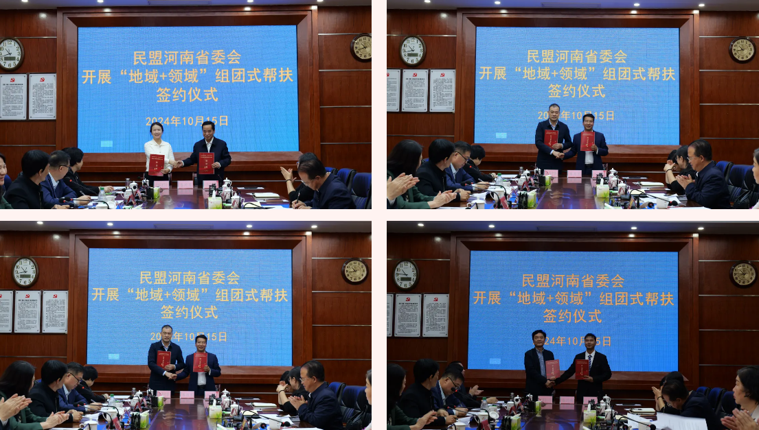推进会上,民盟郑州市委会、民盟开封市委会、民盟信阳市委会、民盟许昌市委会分别向大河乡中学、青场镇中心校、大河乡中心校、青场镇上寨小学捐赠了民盟烛光图书室。河南民盟企业家联谊会向大河乡中心校捐赠学生校服367套,向青场镇上寨小学捐赠学生校服251套。民盟河南省委会妇女委员会向青场镇上寨小学捐赠书包文具251套。在河南省教育厅的支持协调下,郑州市管城区教育局与七星关区教育局,郑州一中教育集团紫荆中学与大河中学,管城区创新街小学与大河乡中心校,管城区牧歌小学与青场镇中心校,管城区外国语小学与青场镇上寨小学分别签订帮扶协议。