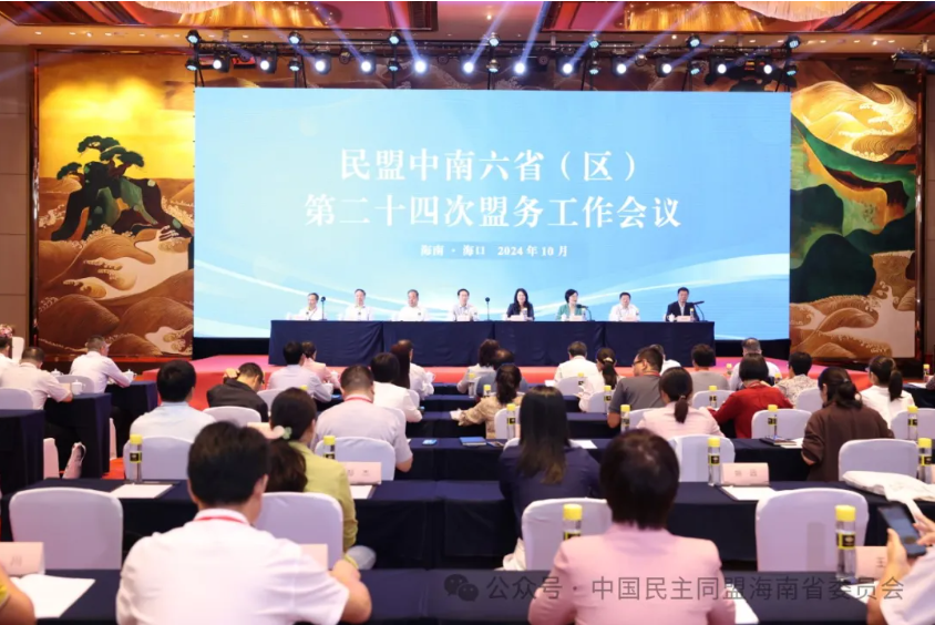 10月30日至31日,民盟中南六省(区)第二十四次盟务工作会议在海南省海口市召开,会议主题为“以高质量盟务工作助力新质生产力发展”。全国人大常委会委员、民盟中央副主席徐辉,民盟中央副主席、河南省政协副主席、民盟河南省委会主委霍金花,民盟中央副主席、广东省政协副主席、民盟广东省委会主委王学成,湖北省人大常委会副主任、民盟湖北省委会主委杨云彦,湖南省政协副主席、民盟湖南省委会主委何寄华,海南省政协副主席、民盟海南省委会主委刘艳玲,广西壮族自治区水利厅厅长、民盟广西区委会主委邓长球出席会议。